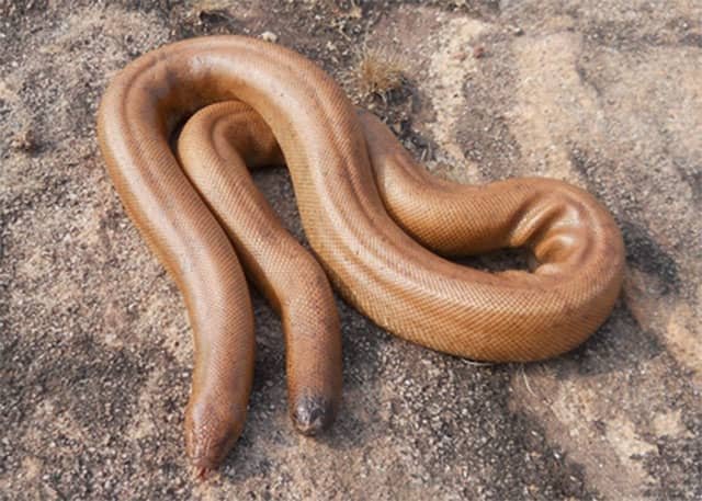 Los ojos y las fosas nasales de la boa de arena están en la parte superior de la cabeza para que puedan respirar y buscar la presa en la superficie, mientras que el resto de su cuerpo se encuentra oculto debajo de la arena.